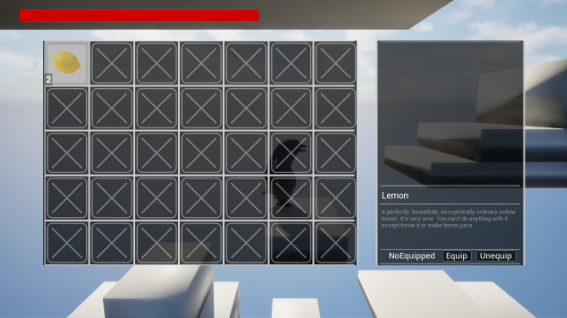 When the player wants to check out the collected items, they can press I to open the inventory to check the collected item’s number of items, name, and description.