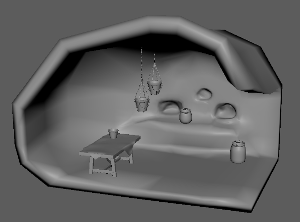 Clutter added to the cave, along with smoother edges to give it a more varied look and make it more obvious it is meant to be a cave.
