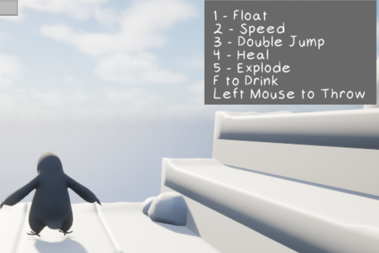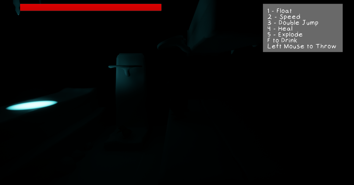 The player can now switch between different potions for drinking and throwing. This will change to have a hot bar at the bottom so the player can interact with the potion. For the final version, players will also need to make these potions before they have access to them in their inventory, but we are allowing access to all of them for the playtesting build.
